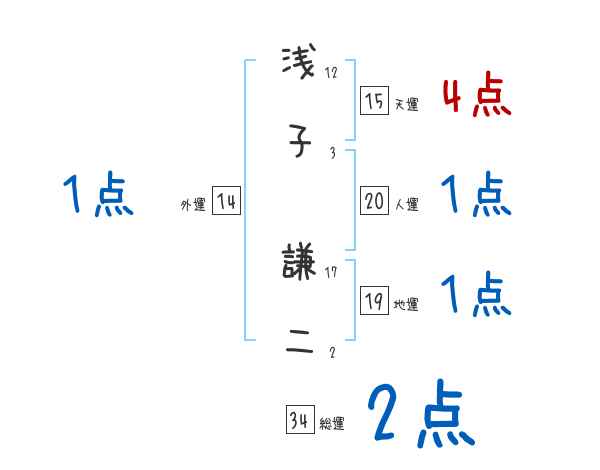 浅子謙二さんの画数の鑑定結果