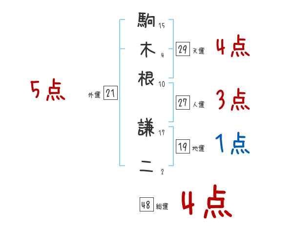 駒木根謙二さんの外運は21画の5つ星