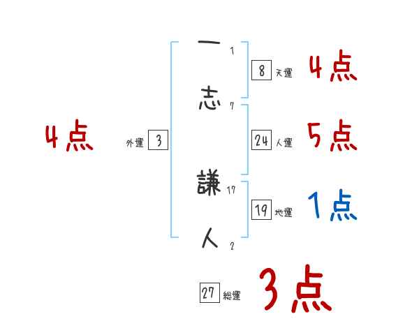 外運![]() | 一志謙人さんの外運は3画の4つ星!活動的で才能に恵まれ、多くの信頼を得る。希望に満ち成長する。 生活面を象徴する運勢です。外部から受ける影響力を表し、結婚運、家庭運や職場、環境への順応性を表します。 |