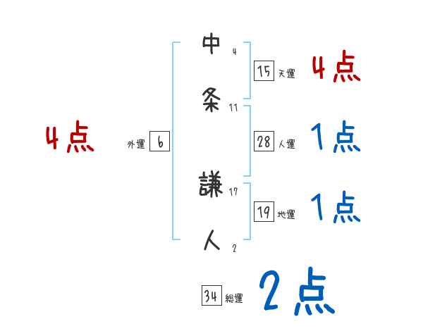 中条謙人さんの画数の鑑定結果