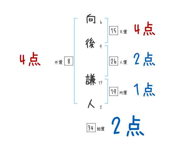 向後謙人さんの画数の鑑定結果