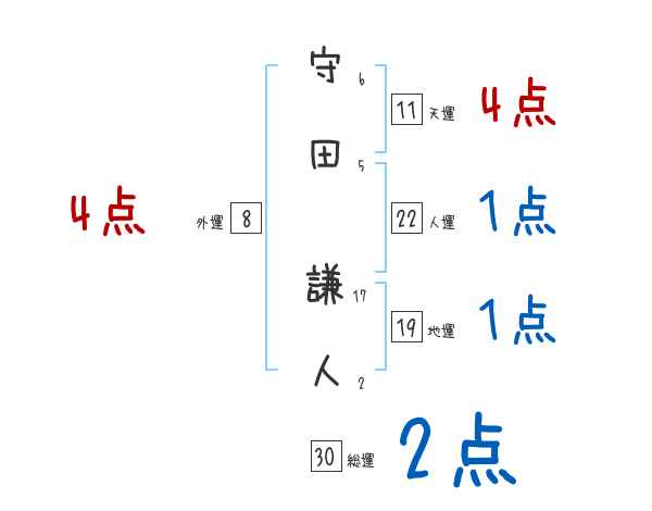 守田謙人さんの画数の鑑定結果