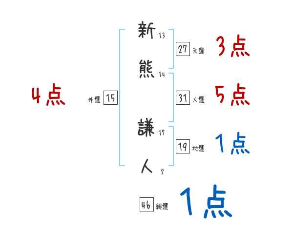 新熊謙人さんの画数の鑑定結果