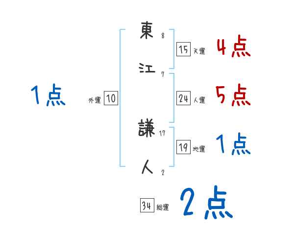 東江謙人さんの画数の鑑定結果