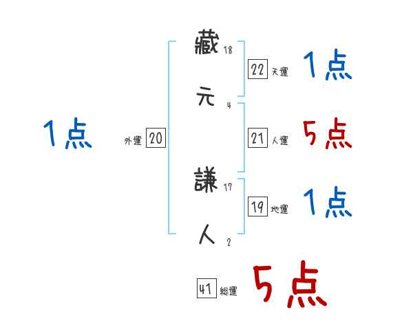 藏元謙人さんの画数の鑑定結果