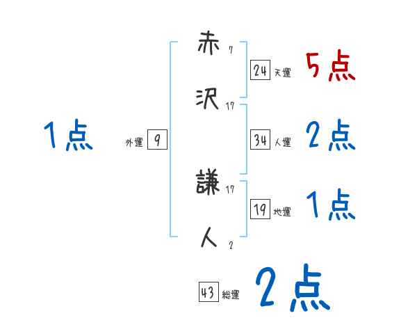 赤沢謙人さんの画数の鑑定結果