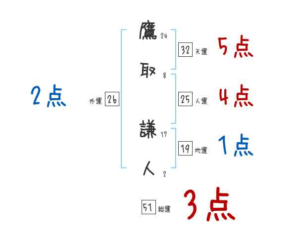 鷹取謙人さんの画数の鑑定結果
