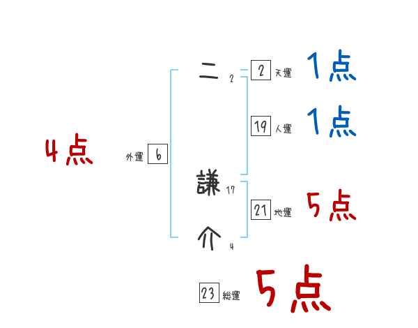 二謙介さんの画数の鑑定結果