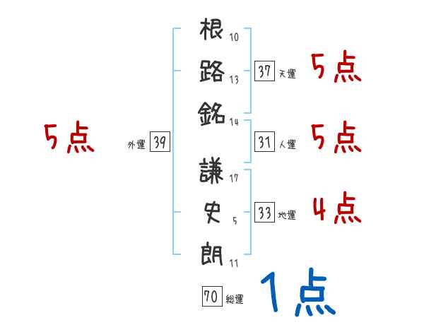 根路銘謙史朗さんの画数の鑑定結果