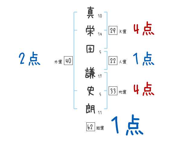 家系が持つ宿命的な運勢を表します。祖先から受け継いだ苗字ですので自分の力が及びません。家柄を象徴します。