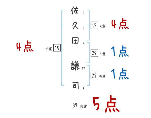 佐久田謙司さんの画数の鑑定結果