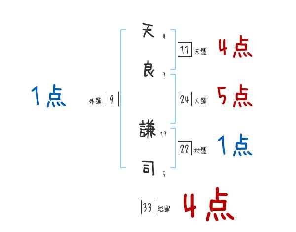 天良謙司さんの画数の鑑定結果