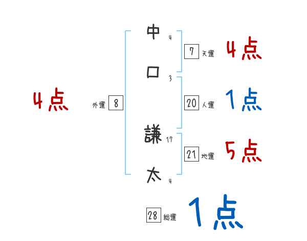 中口謙太さんの画数の鑑定結果