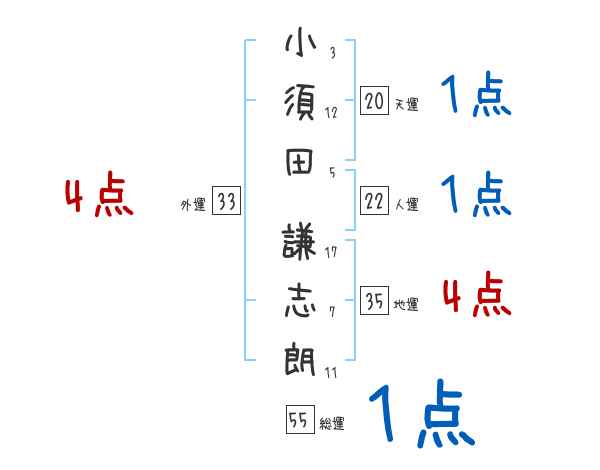 小須田謙志朗さんの画数の鑑定結果