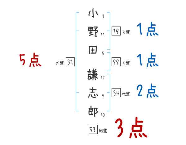 小野田謙志郎さんの画数の鑑定結果