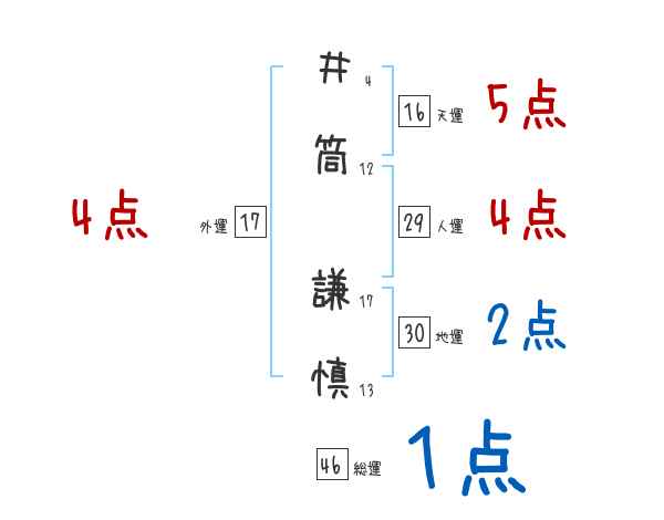井筒謙慎さんの画数の鑑定結果