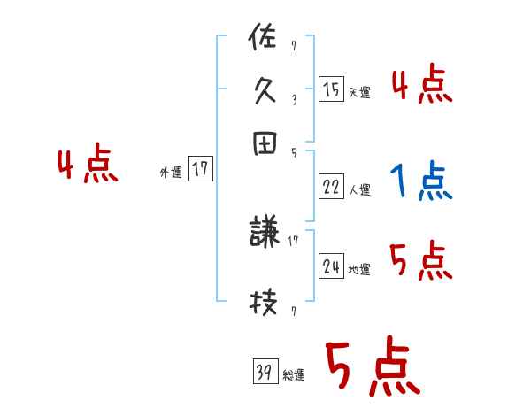 佐久田謙技さんの画数の鑑定結果