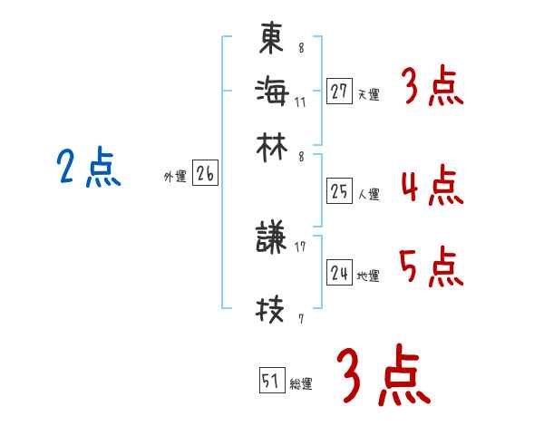 東海林謙技さんの画数の鑑定結果