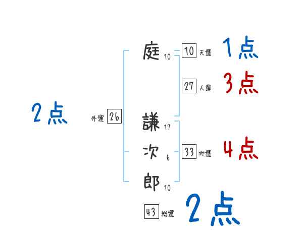 庭謙次郎さんの画数の鑑定結果