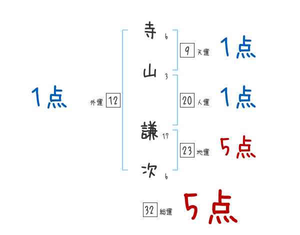寺山謙次さんの画数の鑑定結果