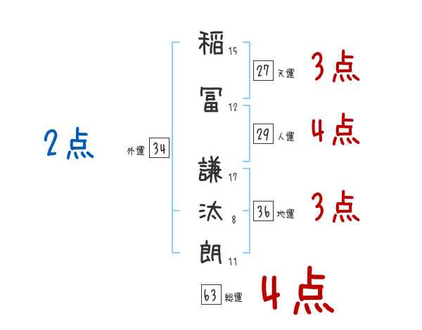 稲冨謙汰朗さんの画数の鑑定結果