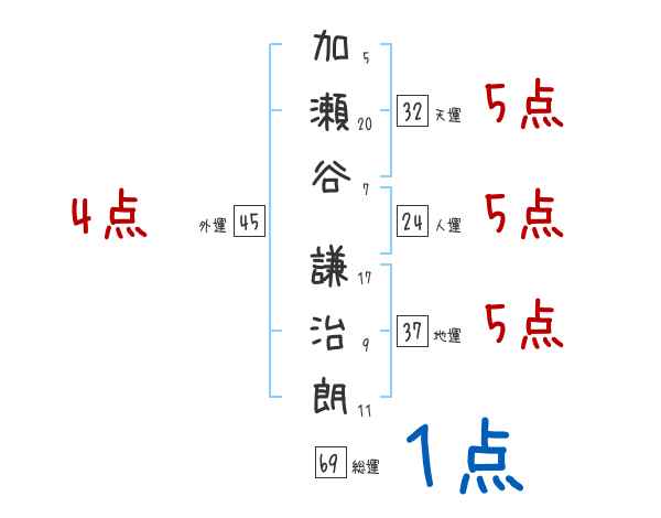 加瀬谷謙治朗さんの総運は69画の1つ星
