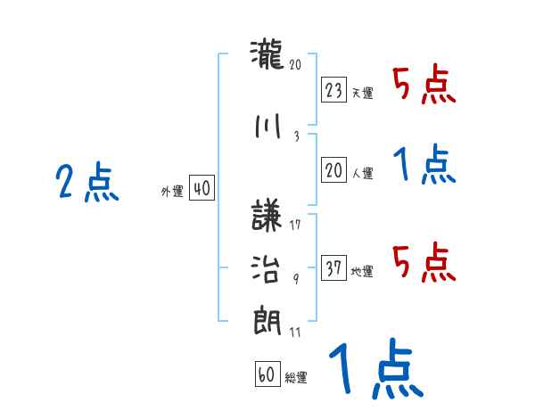 瀧川謙治朗さんの画数の鑑定結果