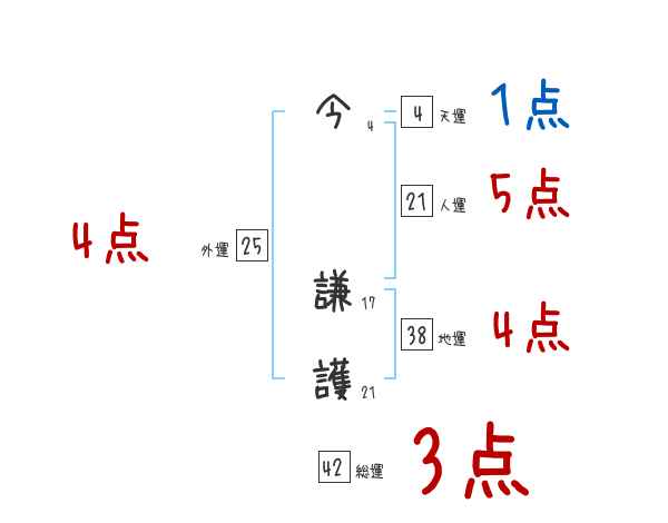 今謙護さんの画数の鑑定結果