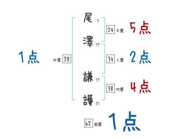 尾澤謙護さんの画数の鑑定結果