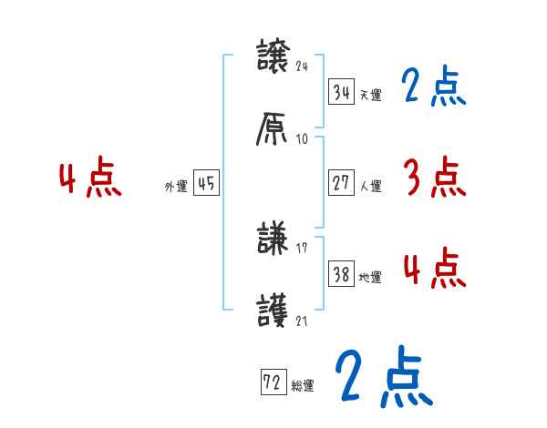 譲原謙護さんの画数の鑑定結果