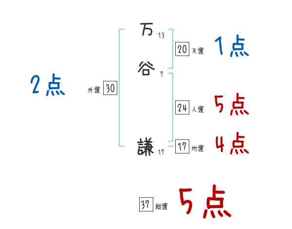 万谷謙さんの画数の鑑定結果