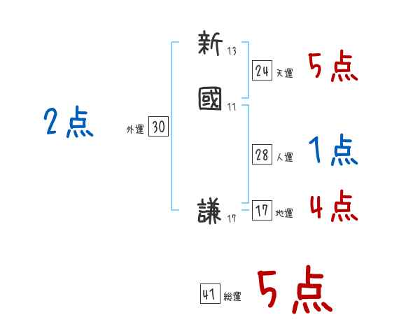 新國謙さんの画数の鑑定結果