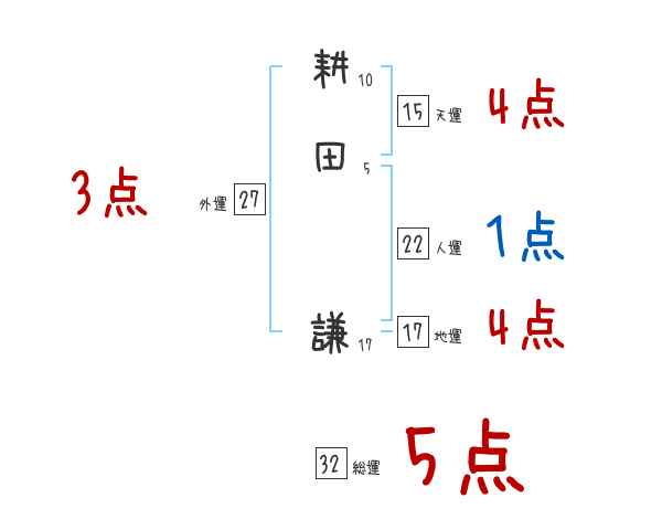 耕田謙さんの画数の鑑定結果