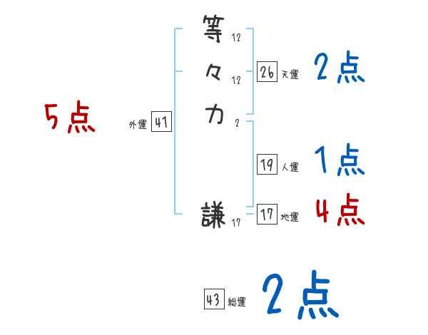 等々力謙さんの画数の鑑定結果