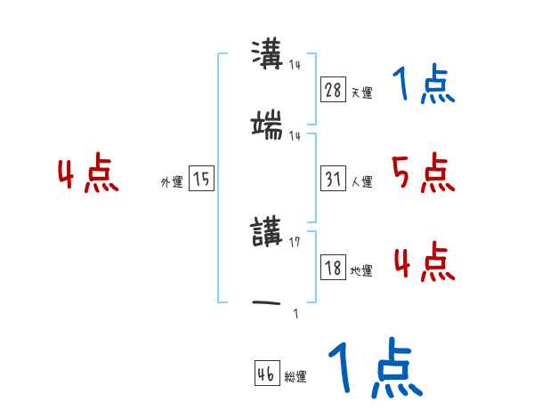 天運![]() | 溝端講一さんの天運は28画の1つ星!家庭環境に注意。スポーツで活躍できる能力があるかも。 家系が持つ宿命的な運勢を表します。祖先から受け継いだ苗字ですので自分の力が及びません。家柄を象徴します。 |