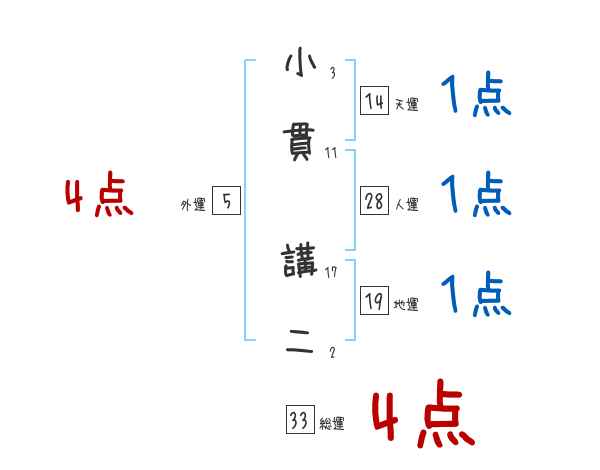 小貫講二さんの画数の鑑定結果