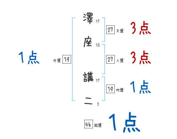 澤座講二さんの画数の鑑定結果