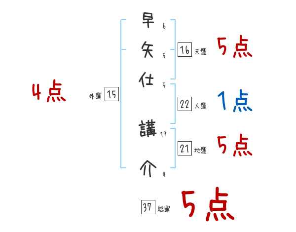 早矢仕講介さんの画数の鑑定結果