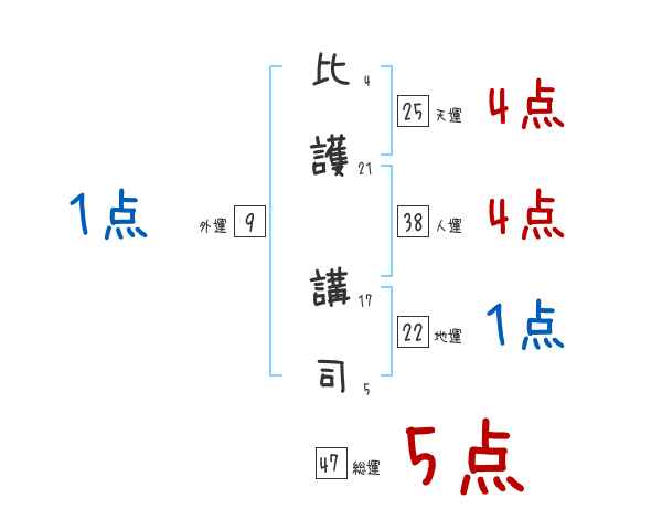 比護講司さんの画数の鑑定結果