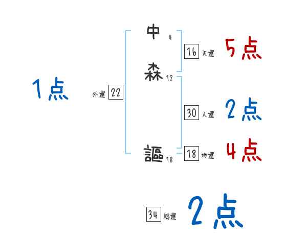 中森謳さんの画数の鑑定結果