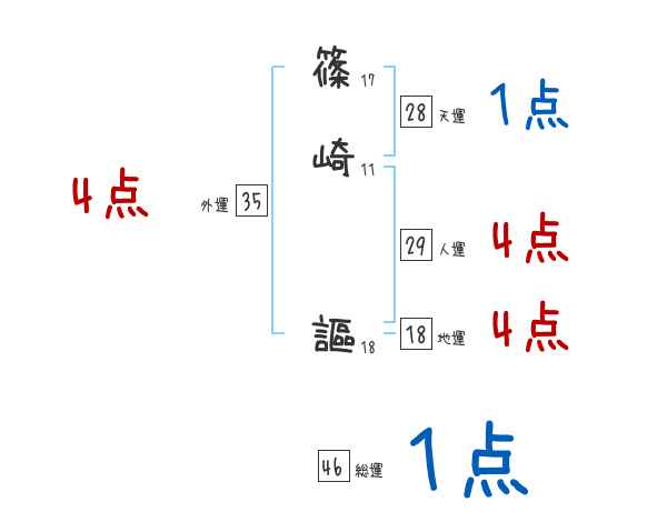 篠崎謳さんの画数の鑑定結果