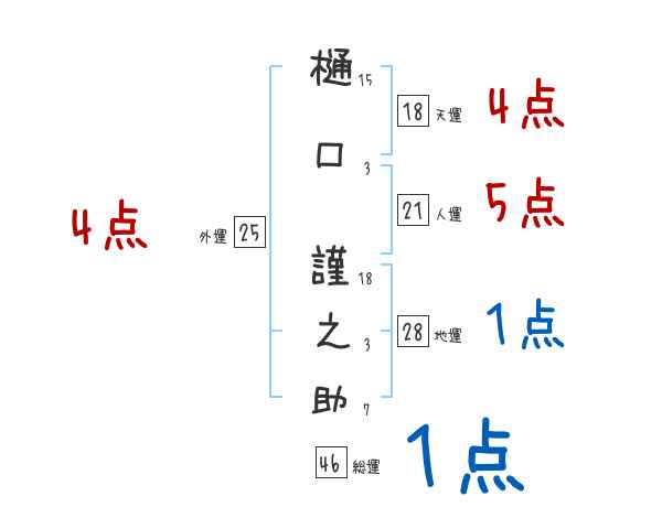 樋口謹之助さんの画数の鑑定結果