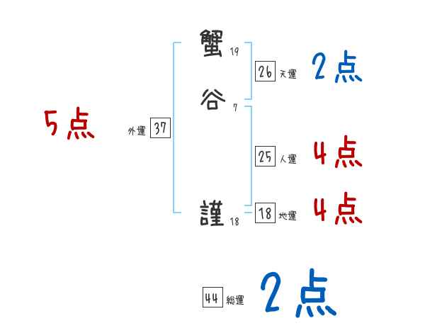 蟹谷謹さんの画数の鑑定結果
