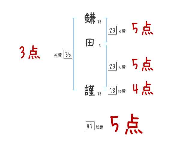 鎌田謹さんの画数の鑑定結果