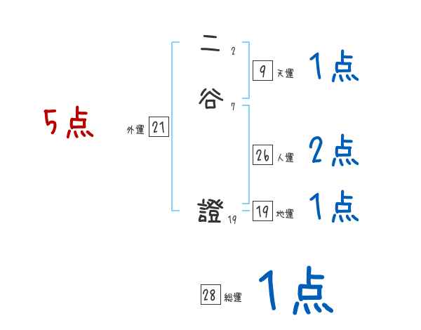 二谷證さんの画数の鑑定結果