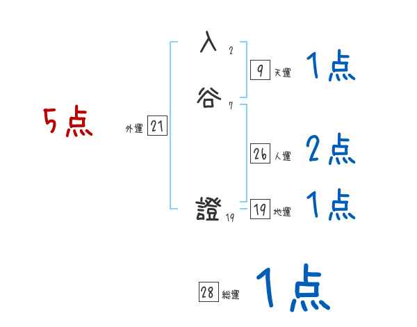 入谷證さんの画数の鑑定結果