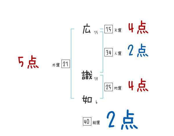 外運![]() | 広識如さんの外運は21画の5つ星!統率力がある。独立し成功する。名誉を手に入れる。 生活面を象徴する運勢です。外部から受ける影響力を表し、結婚運、家庭運や職場、環境への順応性を表します。 |