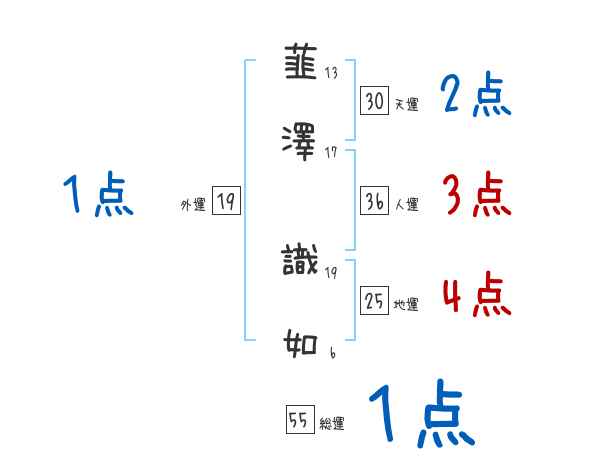 韮澤識如さんの画数の鑑定結果