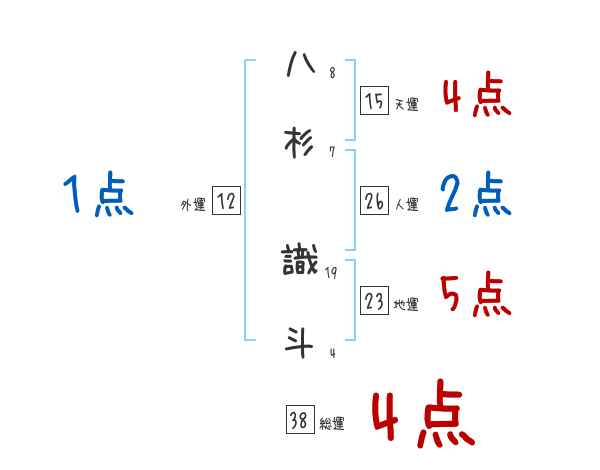八杉識斗さんの画数の鑑定結果
