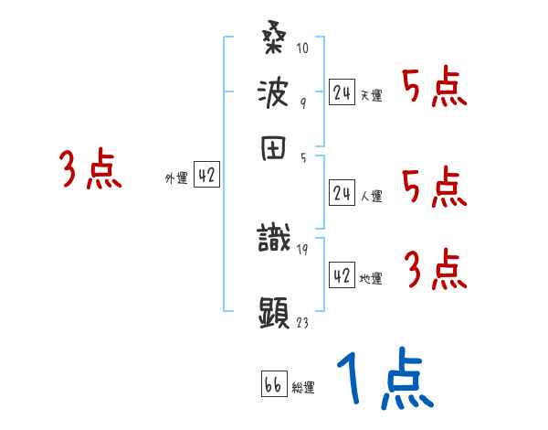 天運![]() | 桑波田識顕さんの天運は24画の5つ星!家庭運が良く順調な人生。金運にも恵まれる。 家系が持つ宿命的な運勢を表します。祖先から受け継いだ苗字ですので自分の力が及びません。家柄を象徴します。 |